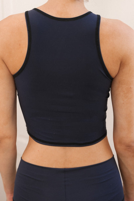contrast trim cropped tank top - nocturnal navy/cloud white