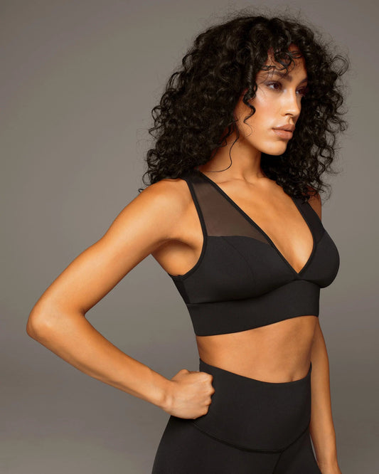 solstice mesh panel longline bra top - black