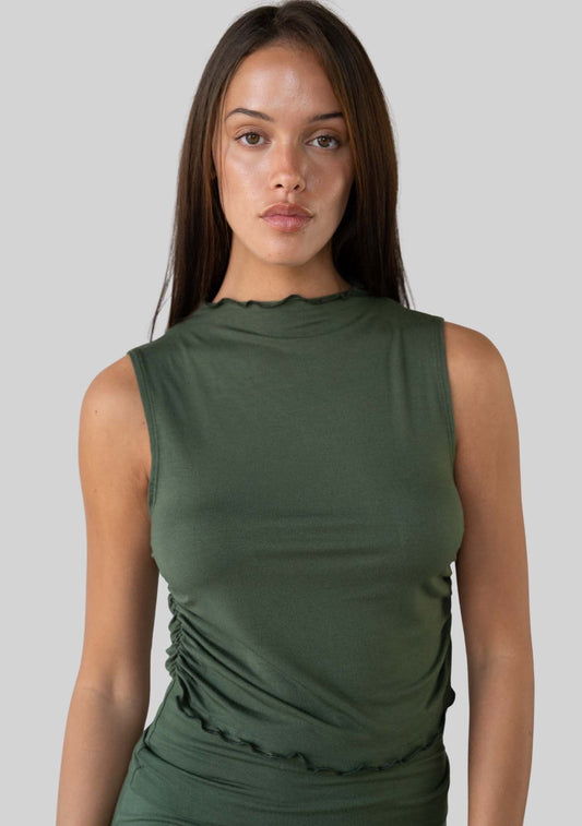 luxurious renew ribbed tank top w/ deep v neckline - black