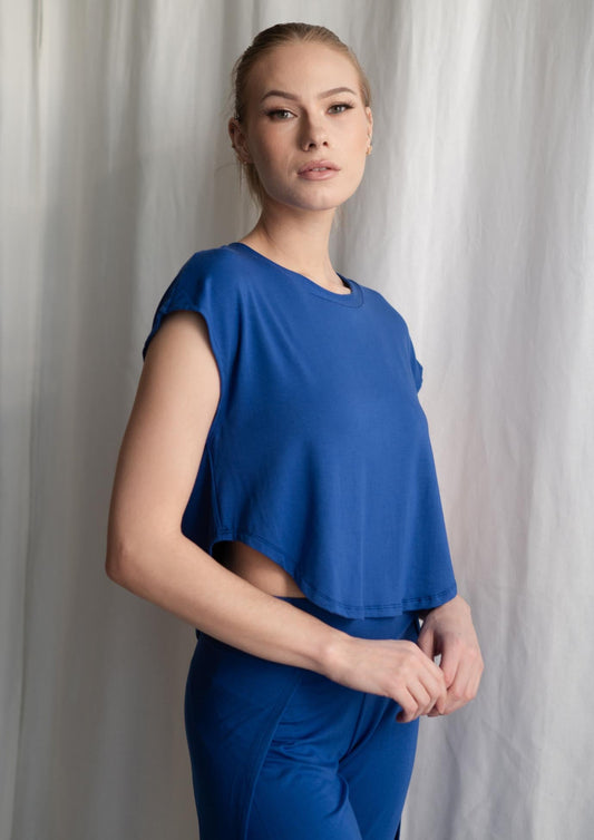 breathable easy tee with active jersey fabric & stretch - sapphire