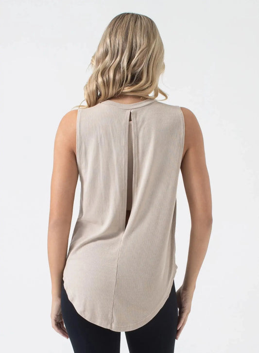 muscle tee with keyhole back – acacia ultra-soft bamboo blend