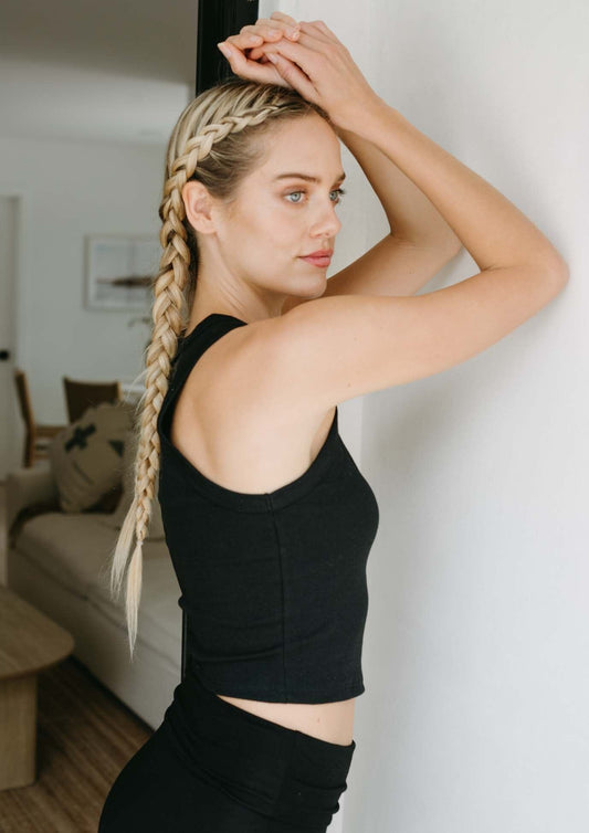 luxurious renew ribbed tank top w/ deep v neckline - pine bark