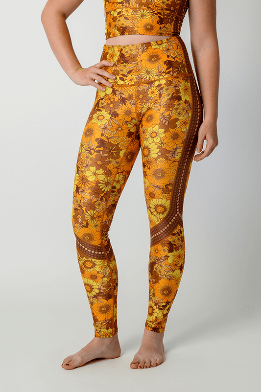 flower power printed yoga leggings – eco-friendly performance tights