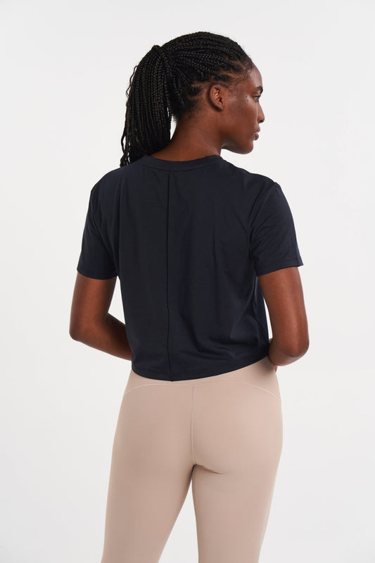 soren cropped top: ribbed comfort with a cinched detail - black