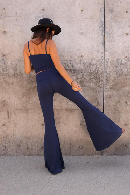 solid navy bell bottom leggings – flared eco style