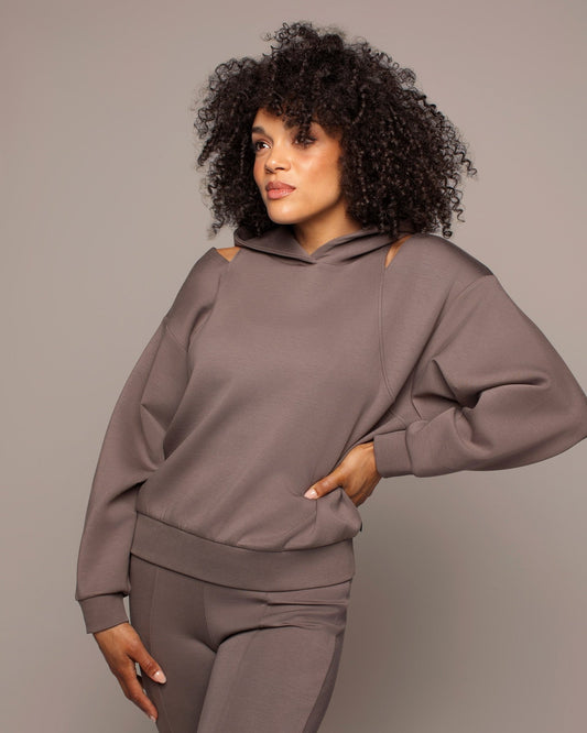 carve hooded jacket with stylish shoulder cut-out detail - deep taupe