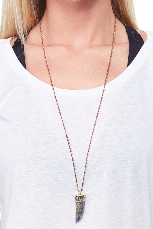 colorful 32 inch horn brass turquoise pendant