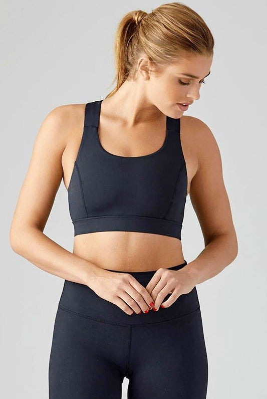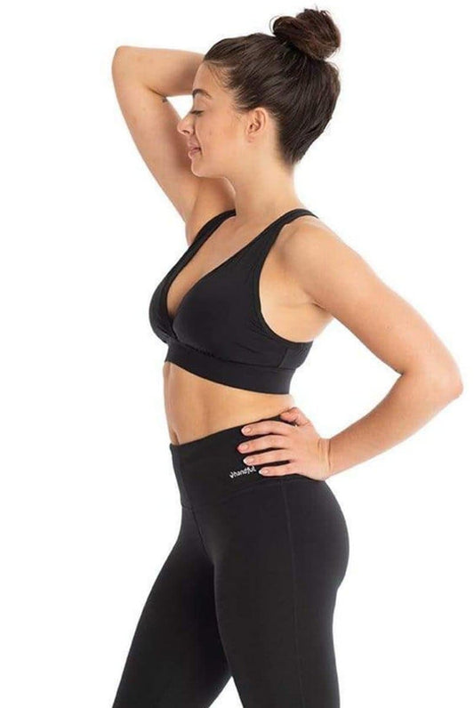 wrap back bra top with supportive crop fit for yoga - black
