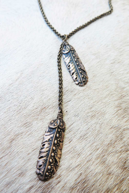 cielo feather antique bronze lariat necklace