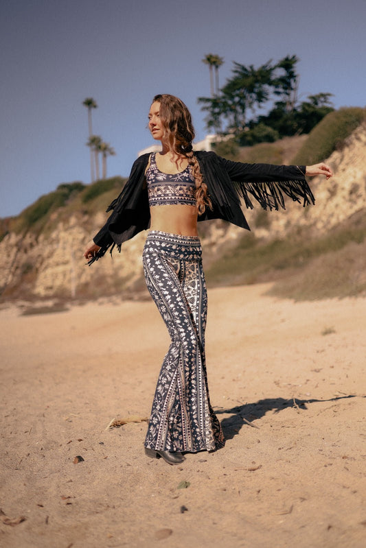 pretty in pink sustainable printed bell bottoms
