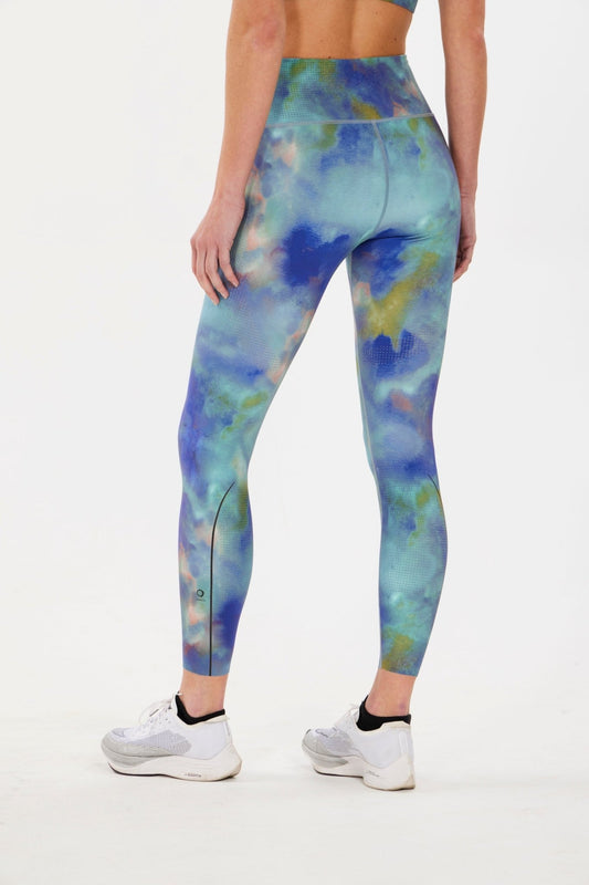 palma leggings – blue palm-inspired ruched waist legging