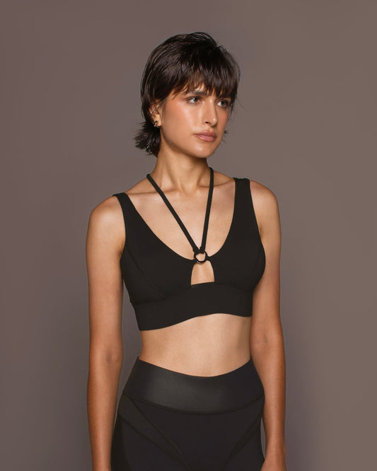 ray v-neck longline bra with wide straps and coverage - black