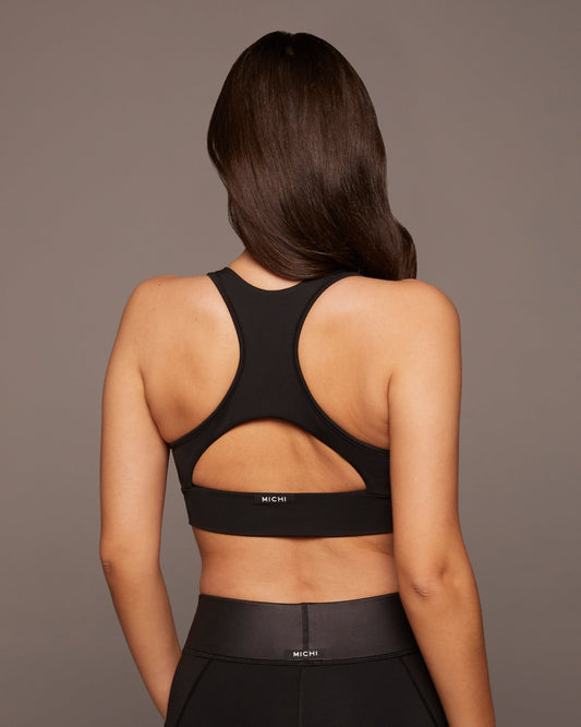 solstice mesh panel longline bra top - black