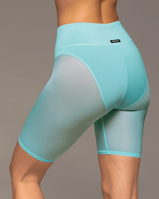 retro '80s reimagined ambient bike shorts 7 1/2 inch - island blue