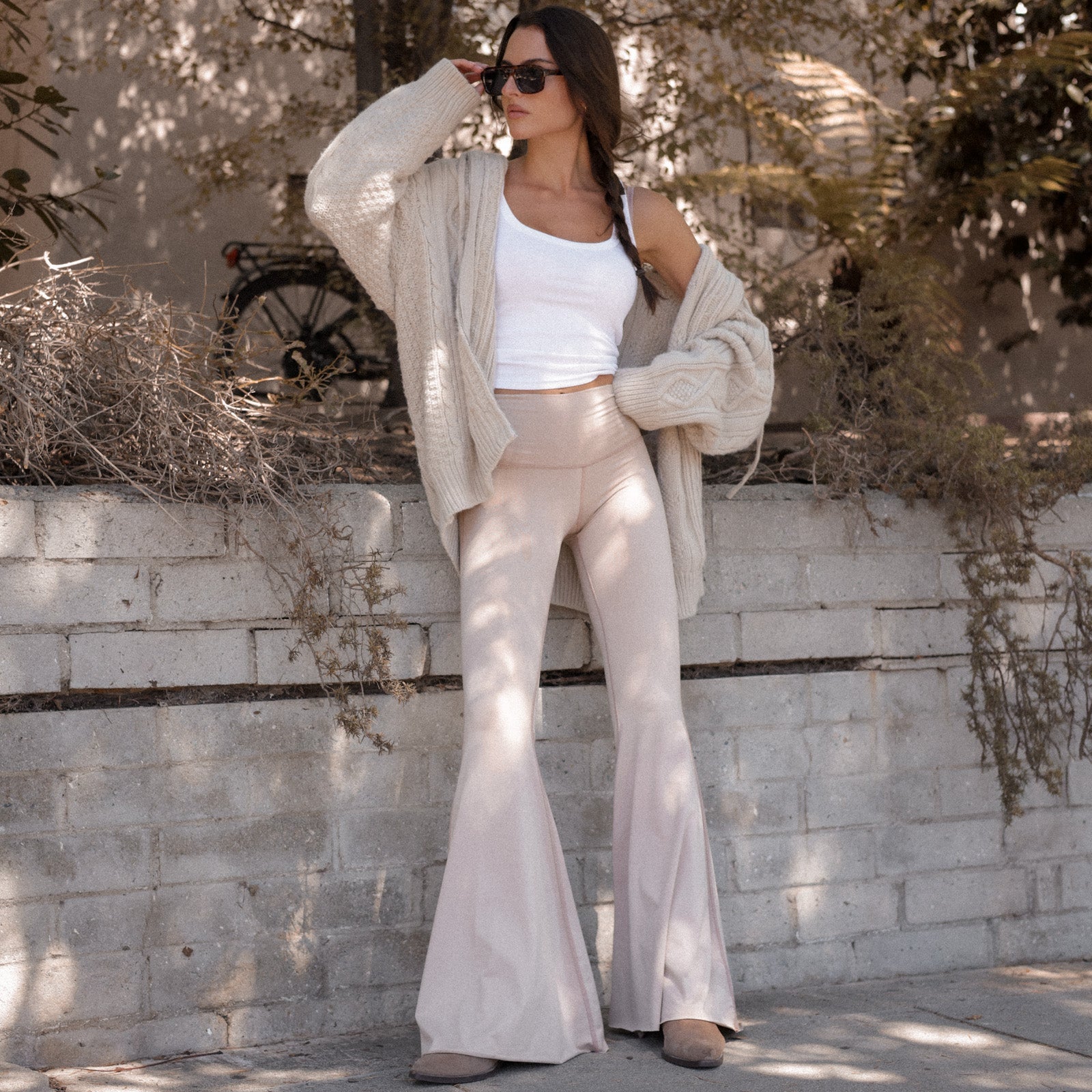 solid tan long bell bottom ♡